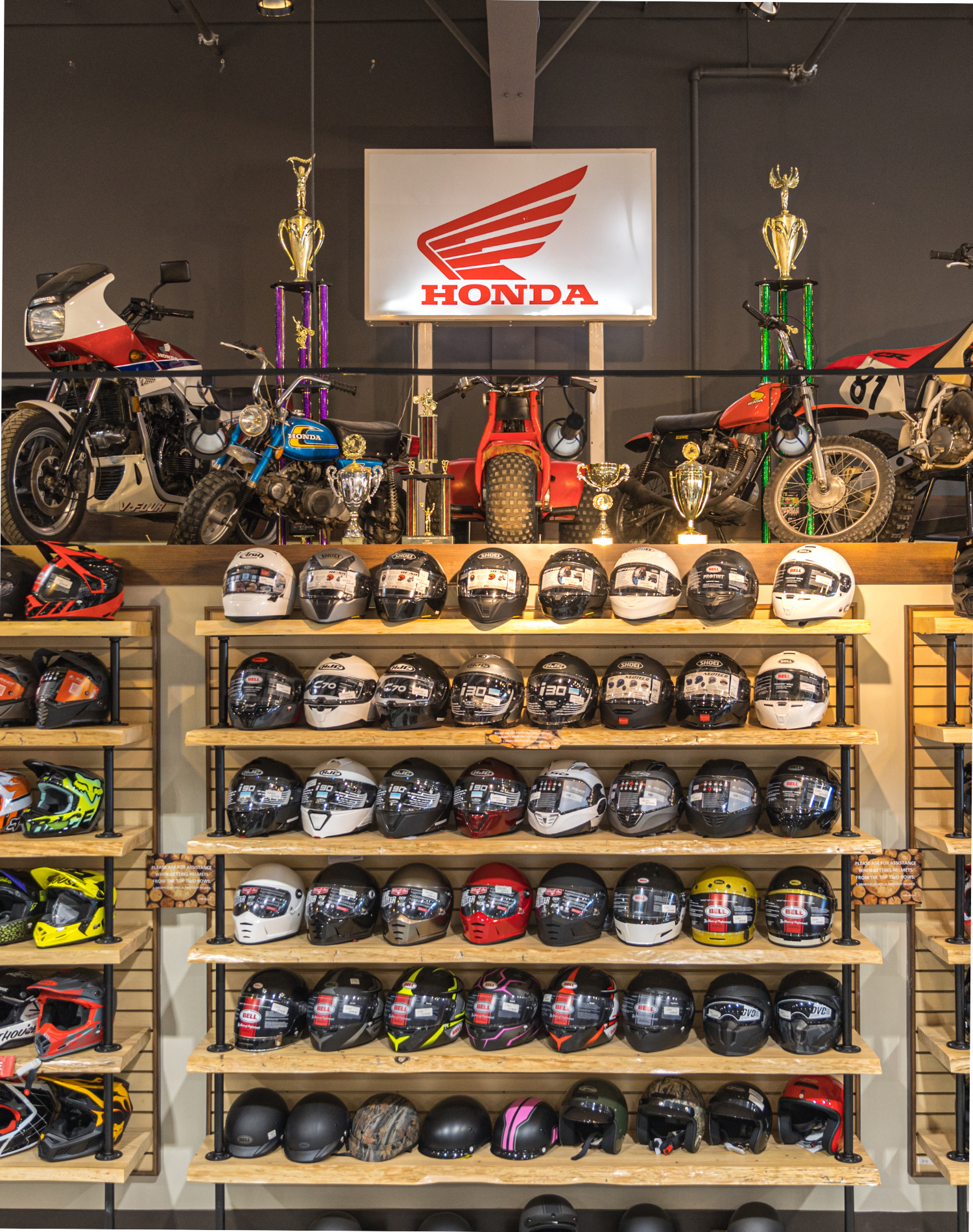 We pride ourselves in carrying an extensive line-up of helmets in-stock at all times from your favourite brands, including, Arai, BELL, Shoei, Classic Helmets, Fox Racing, HJC and more.